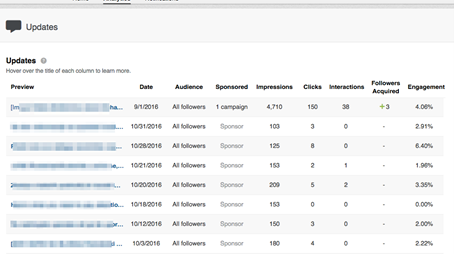 - Category “Followers Acquired” tells you how many followers you gained by promoting each update.