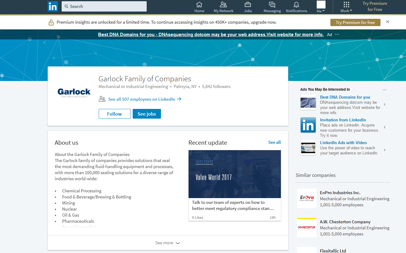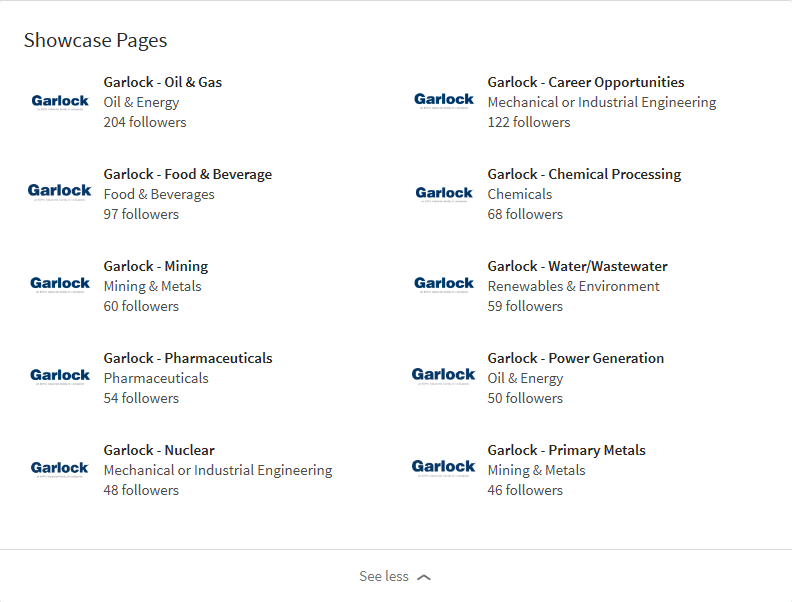 Instead of overflowing the general company page with multiple updates and messages for all the varying topics at one place, Garlock posts specific content to audiences following the individual industry pages, that will be genuinely interested in it.