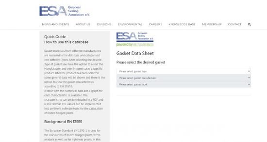 The gasket characteristics published in this database are approved by the ESA. It is a service for our members and for general industry. The data is independently verified from each manufacturer to ensure consistency and accuracy.